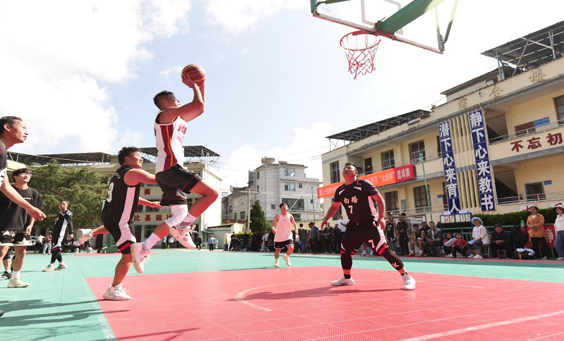 拔河绳绷紧的弧度里藏着较劲的欢腾,篮球场上的身影跃过民族的界限,羽毛球拍划出的弧线连着各族观众的目光——体育竞技的热血还未冷却,射弩场上苗族小伙已架起弩箭,瞄准的瞬间,空气仿佛凝固;高跷上的脚步踩着节奏竞速,木杆敲击地面的声响,成了最带劲的鼓点。