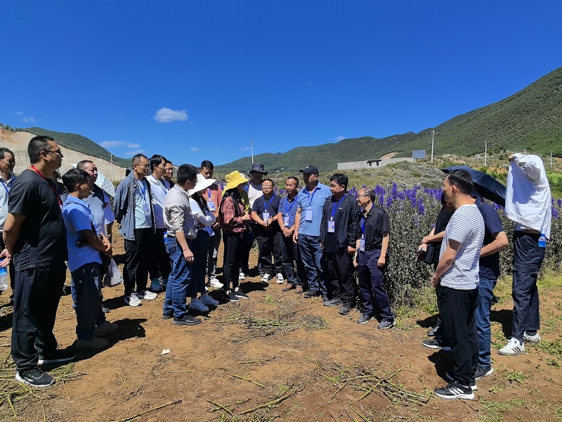 走出蚕室,学员们又来到鹤庆县草海镇马厂村中药材种植基地。明媚的阳光下,开着紫花的附子十分引人注目。在蓝天与紫花接壤的黄土地上,通过交流互动、答疑解惑、现场观摩、工厂体验等,给每个学员都送上了收获满满的“技术大礼包”。到中药材加工厂观摩学习.jpg