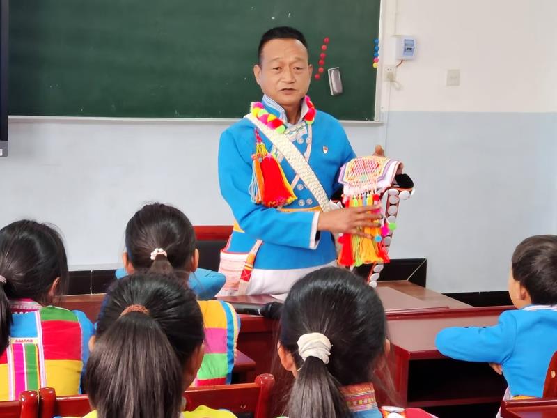 自2022年以来,水城完小将傈僳族农民画和傈僳族服装服饰制技艺两项非遗项目纳入学校课后服务课程,开创了一条以非遗文化浸润校园的特色之路;同时,学校不定期邀请相关非遗项目传承人走进课堂,与学生面对面交流,让非遗特色与现代艺术教育有效结合,在传承中创新,在创新中发展。