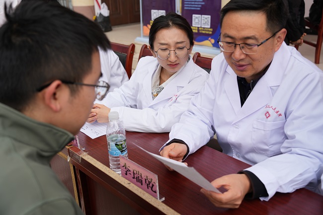 在火红的木棉花盛开之际,义诊现场人头攒动,各族群众满怀期待地排起了长队。30余名医护人员耐心细致地为各族群众开展诊疗,从前列腺癌筛查到胆结石/肾结石筛查,再到中医体质辨识等十余项免费诊疗项目,筑起一道坚实的健康守护屏障。前列腺癌筛查区,李瑞乾教授、江海洋博士团队为各族群众进行免费筛查。他们专注的眼神、熟练的动作,让各族群众感受到了专业与安心。共计采血20余份,为各族群众提供了宝贵的早筛查、早诊断、早治疗机会。李瑞乾教授表示,此次回到家乡,开展“情系家乡医路守护——医师支援家乡”活动,非常高兴,能用自己所学所长为家乡各族群众做些医疗健康小事,很开心。今后会常常回家送医下乡。