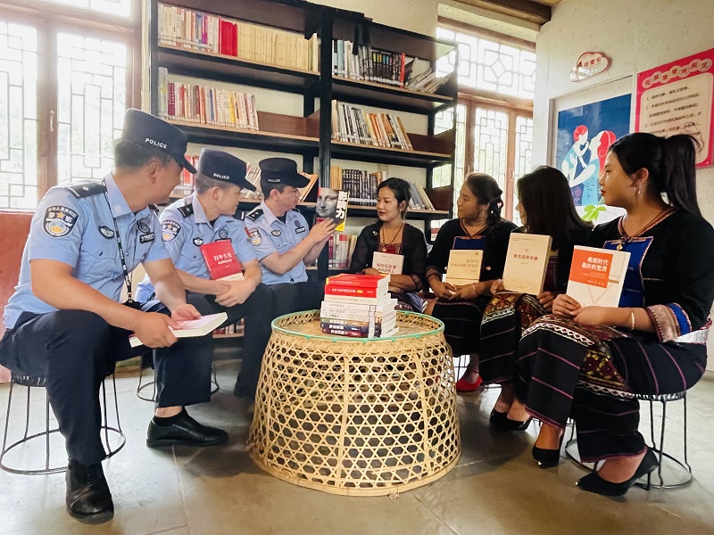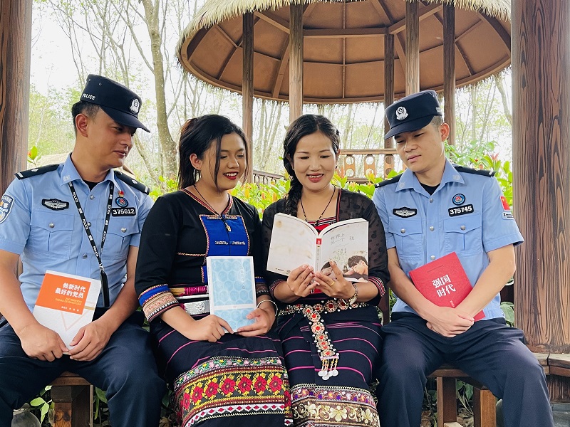 驻地班幸社区德昂族村寨,民辅警与少数民族群众围坐一堂开展“书香飘村寨 文化润民心”读书推广活动共读经典、交流感悟此外还通过“双语故事”“听书会”等形式,让阅读更接地气、更易接受。