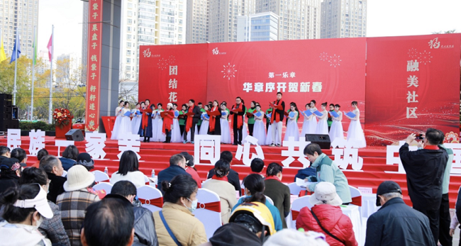 在官渡广场,“社区大舞台”文艺演出精彩上演。诗朗诵《誓词回响映初心互嵌共融促发展》《老人与海鸥》、舞蹈《民族大团结》《花开中国》《五星红旗》、模特走秀《风华韵》……引起现场阵阵掌声,数百名观众沉浸在节日喜庆的氛围中。舞台下,各族群众领春联、喝腊八粥、接受义诊服务等,在其乐融融的氛围中共享互嵌式社区建设的成果。
